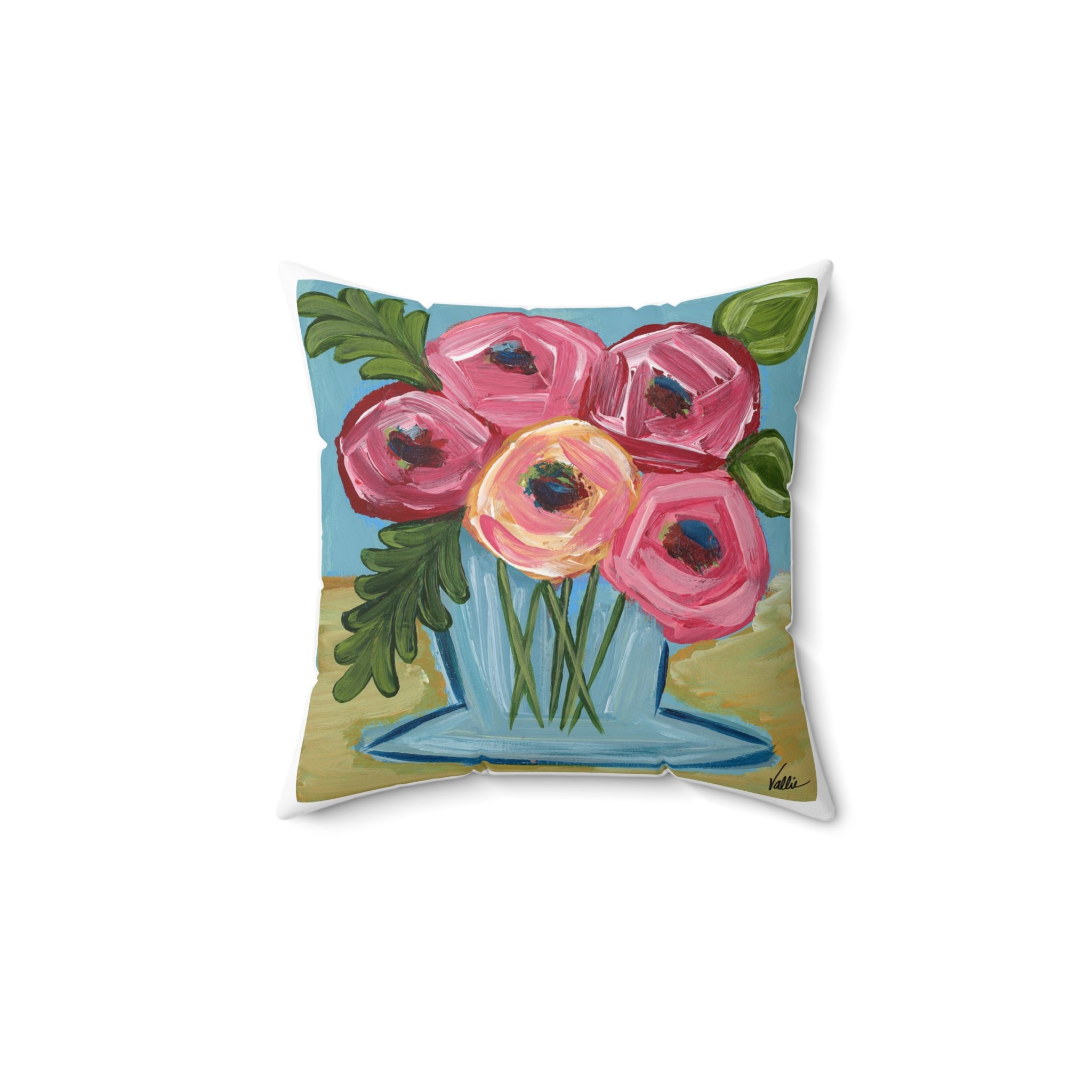 Inspired by my "Paint Me Happy" floral collection...Bright, painterly blooms dance across a soft square pillow, bringing a cheerful, hand-painted touch to sofas, reading nooks, and sunlit window seats. Thick, visible brushstrokes and a fresh palette of teal, yellow, and coral make this cushion feel like a little canvas you can cuddle. It slips onto the couch to lift a muted room or layers with textured throws for a cozy, artful corner. Lightweight and durable, the cover zips off for easy care while the overfilled recycled insert gives that plush, welcoming loft when you fluff it open.