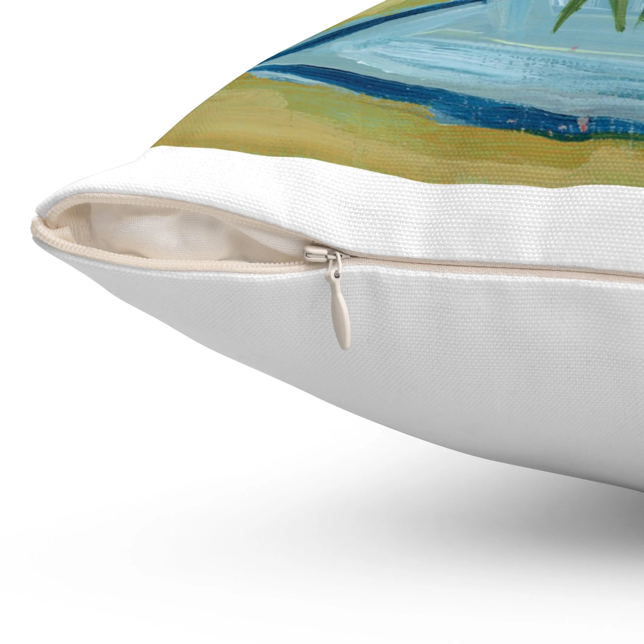 - Concealed beige zipper with metal pull for a clean finish